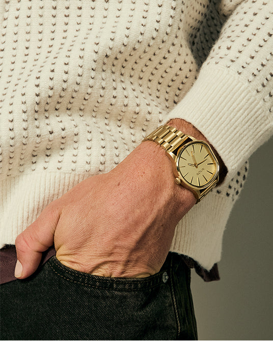 “Diese Uhr ist einfach bezaubernd! Die perfekte Größe für schmalere Handgelenke (dank der mitgelieferten Verlängerungsglieder). Sie wirkt professionell, ohne protzig zu sein. Ich besitze bereits eine deutlich größere und schwerere Uhr von Nixon, die ich sehr mag, daher freue ich mich umso mehr, dass diese hier kleiner und leichter ist. Ein ideales Geschenk!”