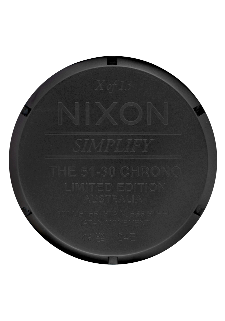 Tauchtaugliche 300m Wasserdichtigkeit und solide Edelstahlkonstruktion machen die 51-30 Chrono Friday the 13th Edition zu einem der robustesten Stücke in der Linie.