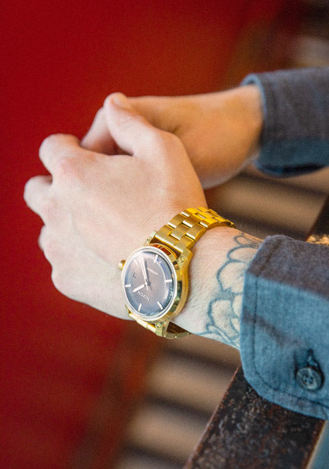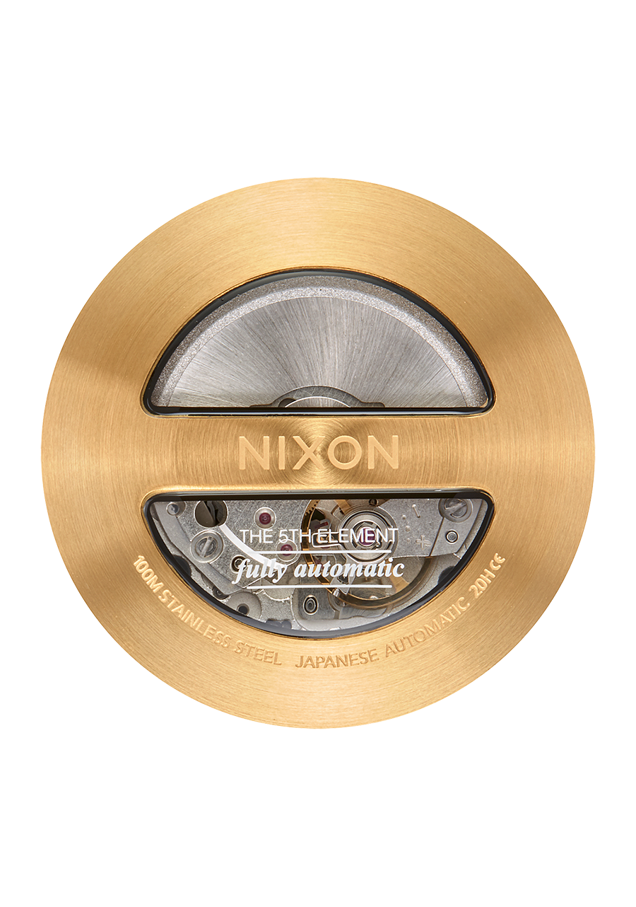 Das einzigartige zweiteilige Design eliminiert die Notwendigkeit eines traditionellen Gehäusebodens, während das geteilte Fenster einen Blick auf das Innenleben des automatischen Uhrwerks ermöglicht und die maßgeschneiderte Kristallform mit abgeschrägten Kanten nahtlos in das Gehäuse übergeht. Das gewölbte Zifferblatt verfügt über LUME-Blockindizes und LUME-Akzente auf den Zeigern für Sichtbarkeit auch bei schlechten Lichtverhältnissen.