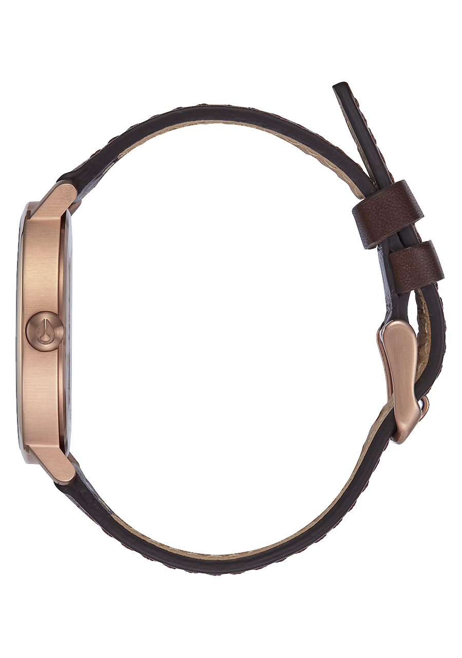 Dieses Zifferblatt enthält das applizierte Nixon-Logo und Stundenmarkierungen sowie gedruckte Zahlen und individuell geformte Zeiger.