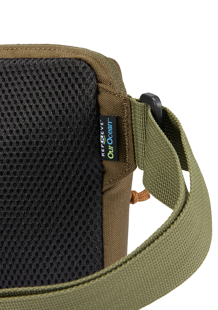 600D Polyester aus REPREVE® Our Ocean™ (aus recyceltem Ozeanplastik). Innenmaterial aus 70D Polyester aus REPREVE® (aus recyceltem Plastik)