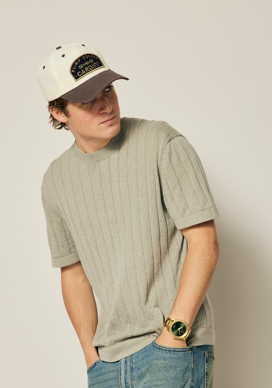 Die Felduhr mit klarem, taktischem Vorteil. Das Zifferblatt wird durch ein versenktes Glas geschützt, und die übergroße Lünette unterstreicht die robuste Haltbarkeit. Das funktionale Design, kombiniert mit Details wie facettierten Gliedern, die von der Seite betrachtet wie ein Gebirgszug aussehen, sorgt dafür, dass die Corporal immer die Oberhand hat.