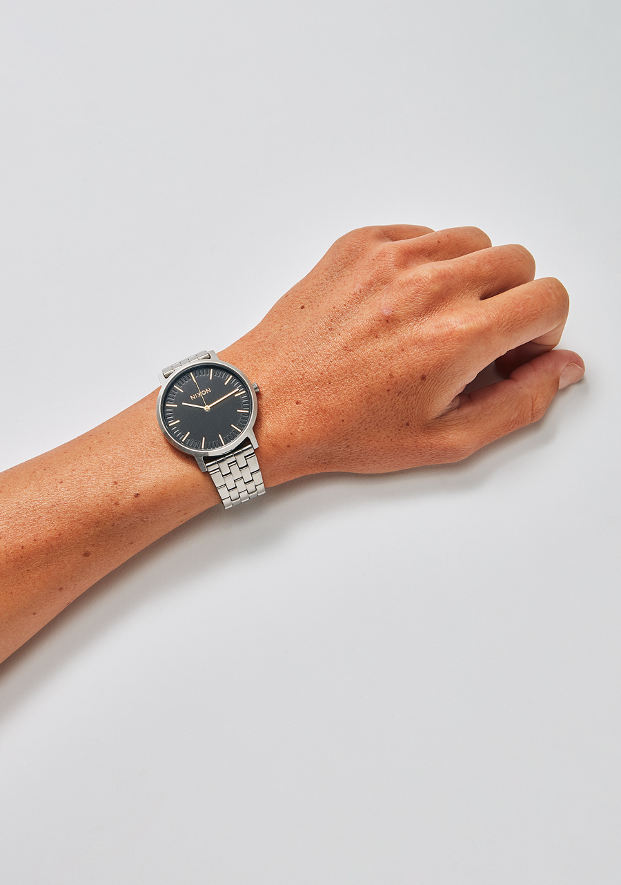 Ultradünnes, konisch zulaufendes Uhrengehäuse für minimales Gewicht und maximalen Tragekomfort.