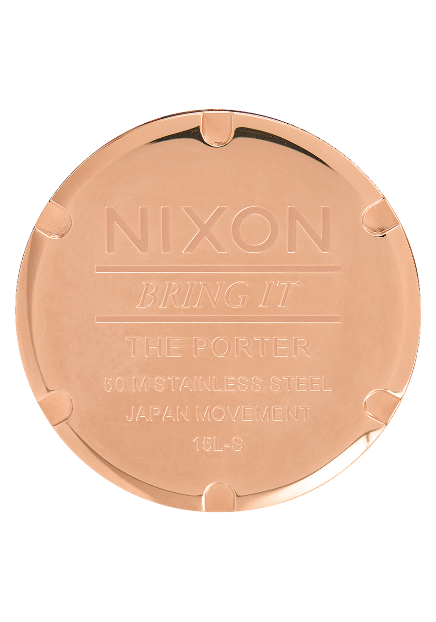 Das Gehäuse der Nixon Porter Leder besteht aus Edelstahl nach Maß, während das Armband aus Leder gefertigt ist. Um das Lederarmband zu pflegen, wischen Sie zunächst Staub mit einem trockenen Mikrofasertuch ab. Befeuchten Sie dann das Tuch leicht und wischen Sie vorsichtig Schmutz vom Armband ab. Lassen Sie das Armband schließlich an der Luft trocknen. Für weitere Informationen zur Reinigung von Lederarmbändern lesen Sie unseren Blog.