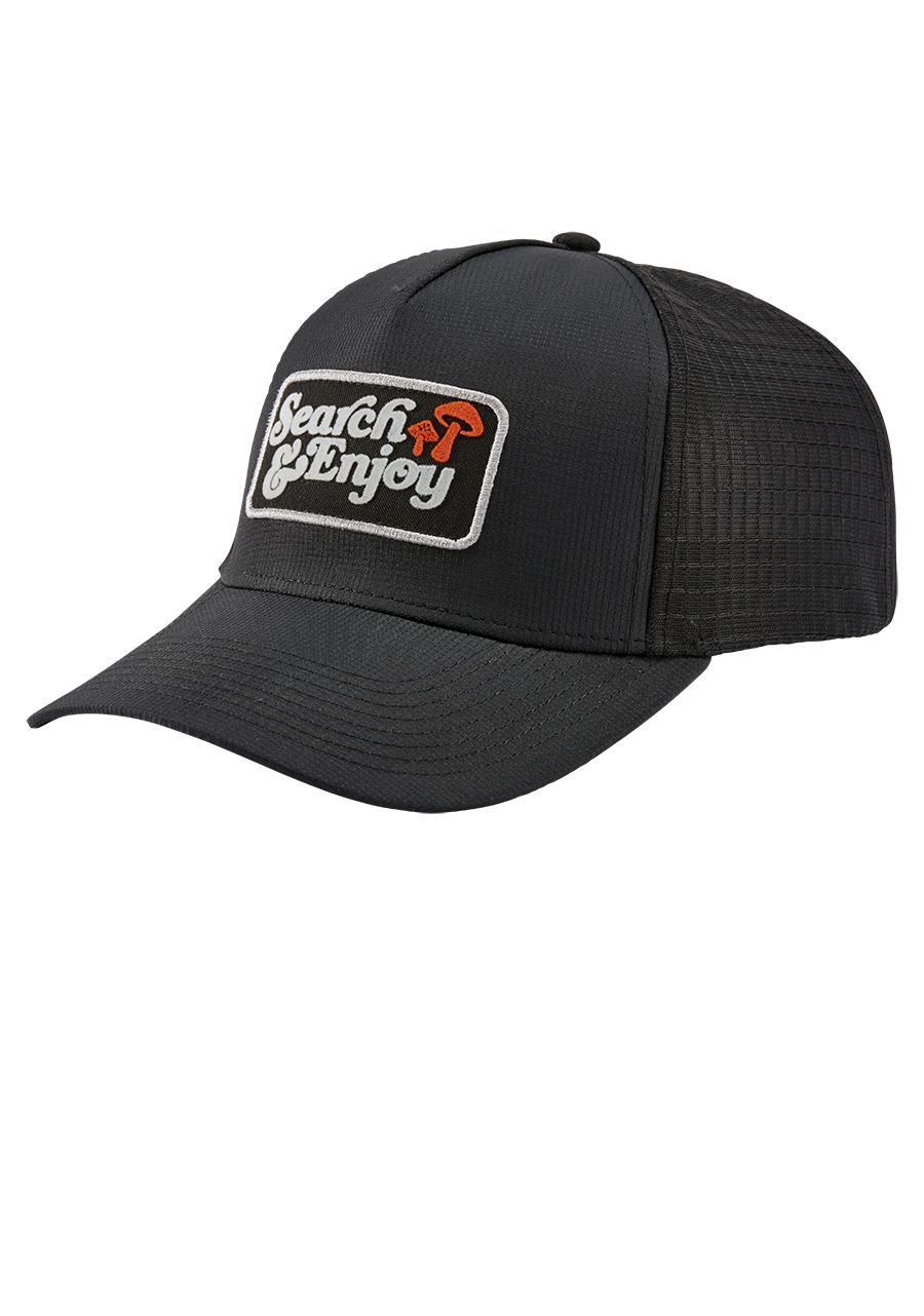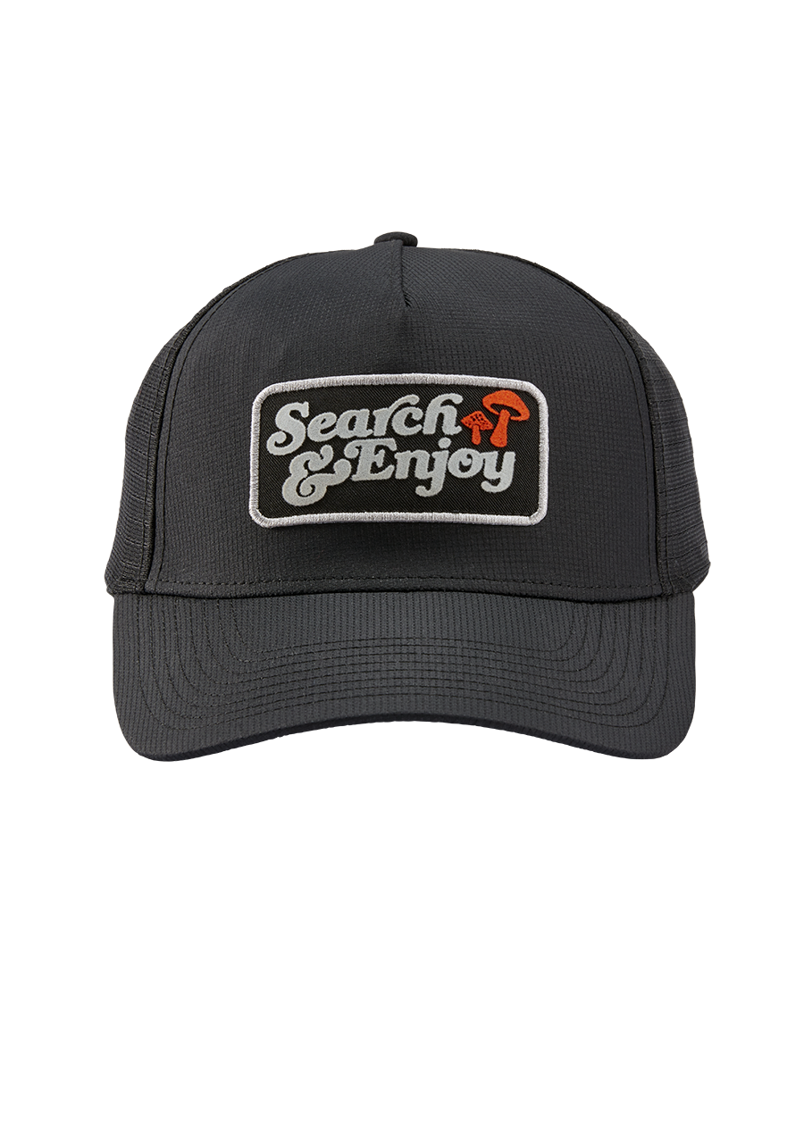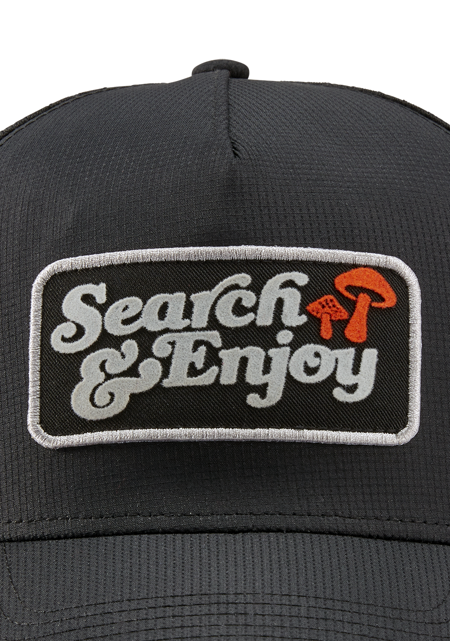 Die Search & Enjoy Truckercap erinnert dich auf subtile Weise daran, den Weg zu genießen, und hält dein Abenteuer auf Kurs, egal wie sehr du dich verirrst. Die tiefe Passform und der geschwungene Schirm helfen dir, dich auf das zu konzentrieren, was vor dir liegt, und halten dich kühl, indem sie die Luft frei zirkulieren lassen.