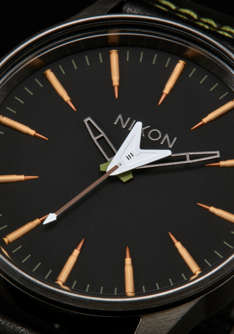 42mm maßgefertigtes Gehäuse aus massivem Edelstahl mit einer Wasserdichtigkeit von 100 Metern / 10 ATM. Ausgestattet mit einem gehärteten Mineralglas, einer Krone mit dreifacher Dichtung und Emaillefüllung, einem verschraubten Edelstahl-Gehäuseboden und Federsteganstößen.