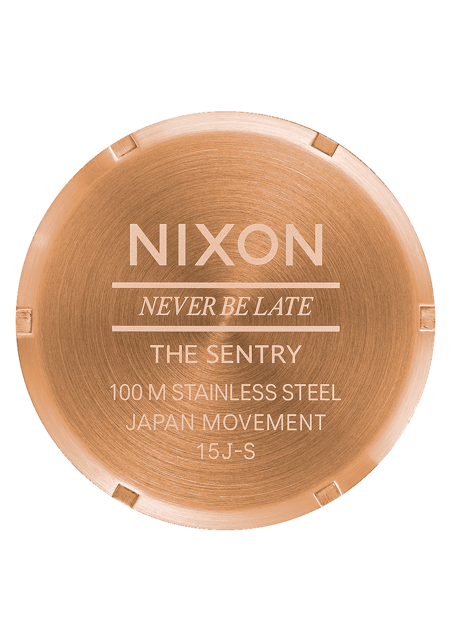 Nixon bietet eine begrenzte Garantie für die Sentry Leather, die Material- und Verarbeitungsfehler für zwei Jahre ab Kauf bei einem autorisierten Händler abdeckt.