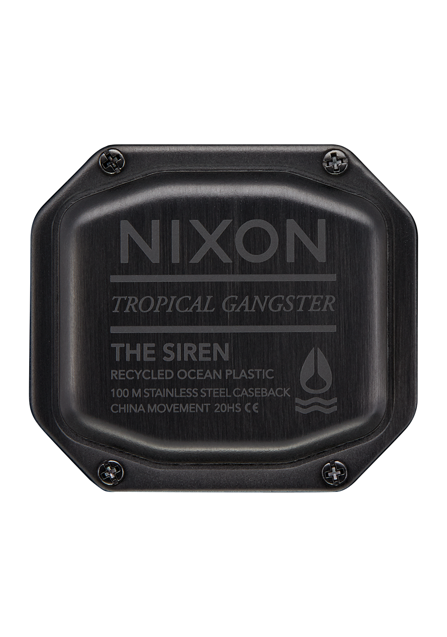 38mm maßgefertigtes, spritzgegossenes Gehäuse aus verstärktem recyceltem Ozeanplastik mit einer Wasserdichtigkeit von 100 Metern / 10 ATM. Ausgestattet mit maßgefertigten, dichtungsfreien Edelstahl-Drückern, verschraubtem Edelstahl-Gehäuseboden und verschraubten Edelstahl-Bügeln.