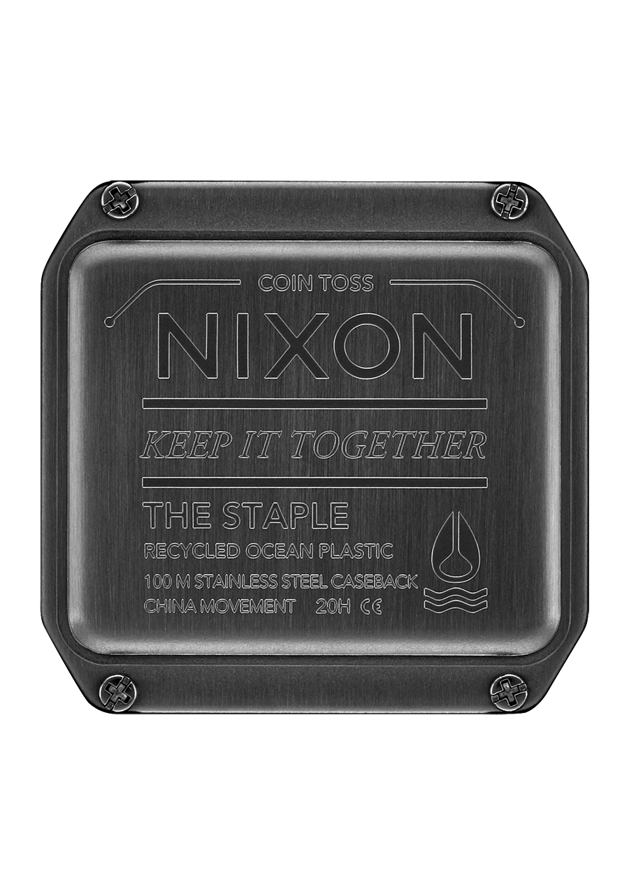 39mm maßgefertigtes, spritzgegossenes Gehäuse aus faserverstärktem, recyceltem Ozeanplastik mit einer Wasserdichtigkeit von 100 Metern / 10 ATM. Ausgestattet mit Edelstahl-Drückern, gehärtetem Mineralglas, massivem Edelstahl-Schraubboden und Schraubstiftanstößen.