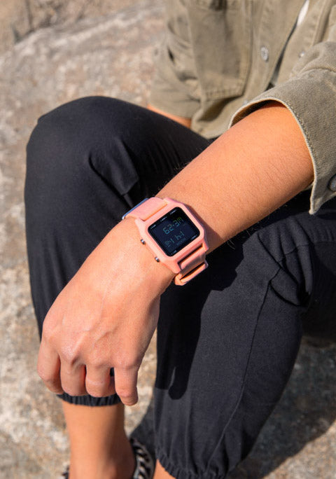 39mm maßgefertigtes, spritzgegossenes Gehäuse aus faserverstärktem, recyceltem Ozeanplastik mit einer Wasserdichtigkeit von 100 Metern / 10 ATM. Ausgestattet mit Edelstahl-Drückern, gehärtetem Mineralglas, massivem Edelstahl-Schraubboden und Schraubstiftanstößen.