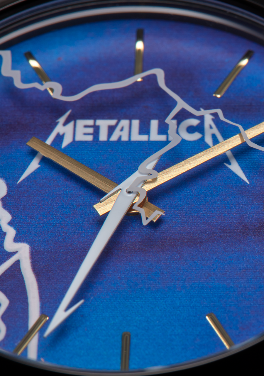 Das Zifferblatt verfügt über erhabene Stabindizes und maßgefertigte Zeiger.