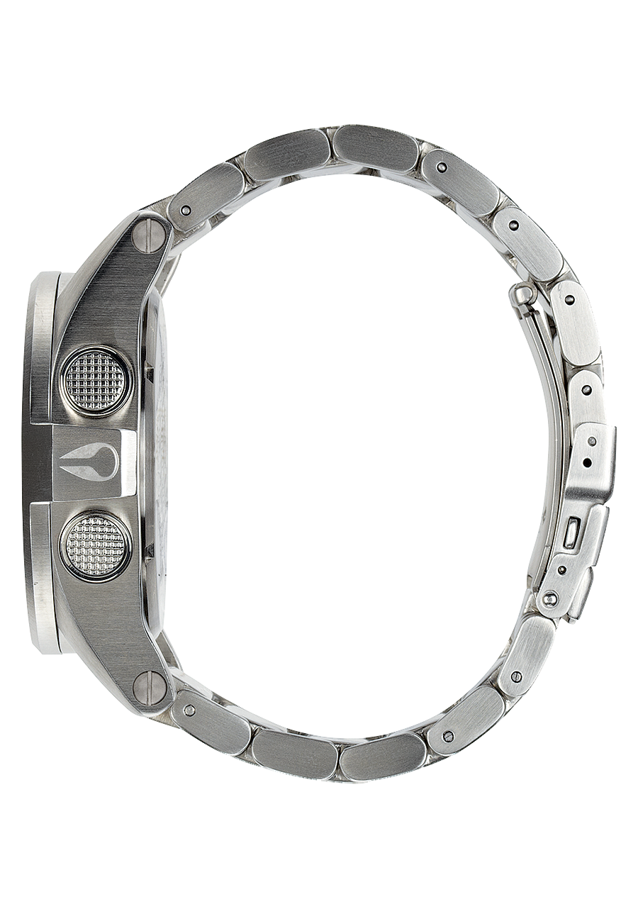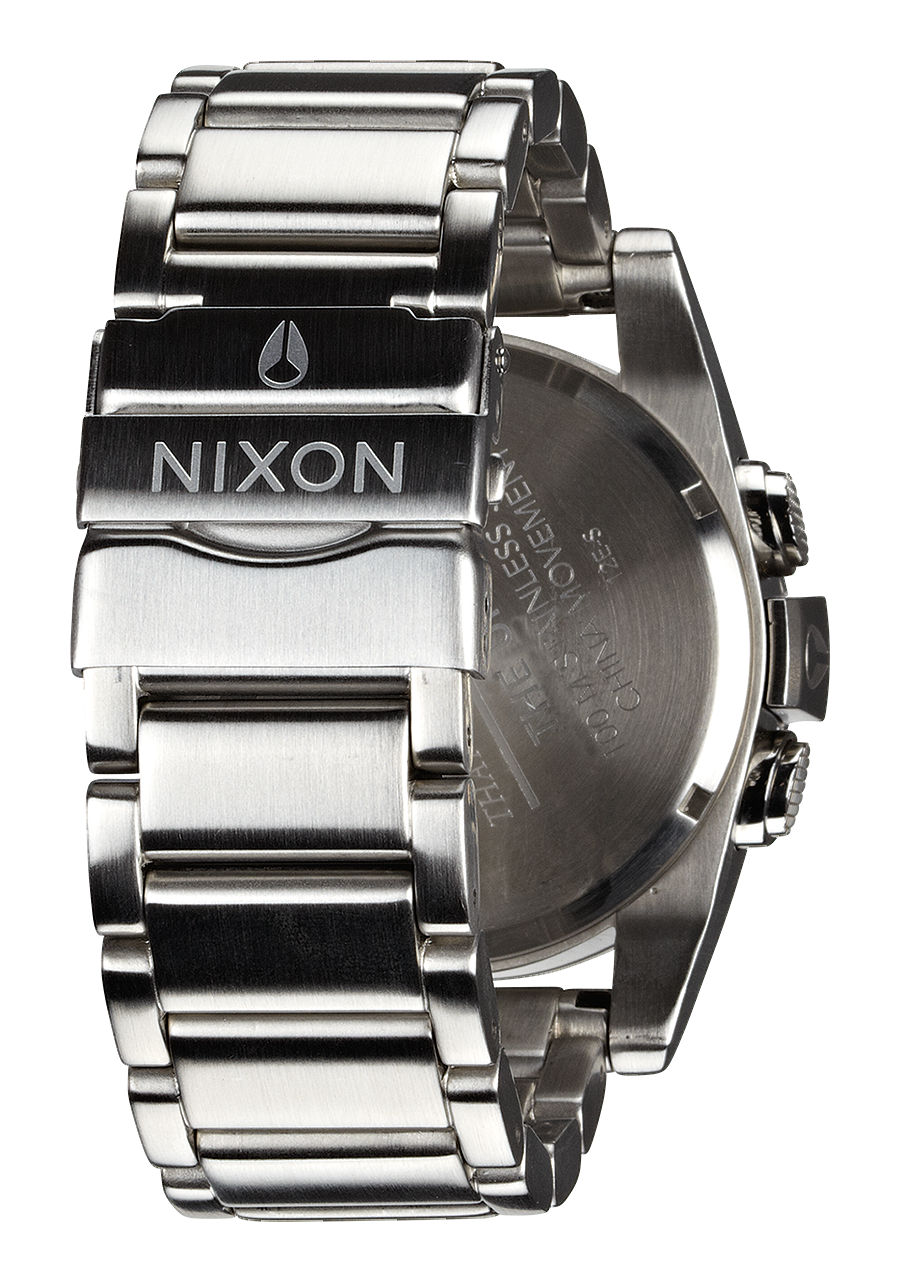44,5 mm, 100 Meter/10 ATM maßgefertigtes massives Edelstahlgehäuse, feste massive Edelstahllünette, gehärtetes Mineralglas, doppelte Dichtung an Edelstahl-Drückern, verschraubter Edelstahl-Gehäuseboden und verschraubte Bandanstöße.